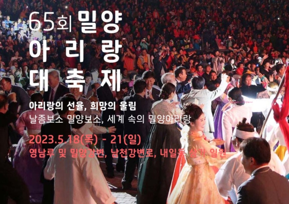 먼저, '밀양 아리랑 대축제'는 2023년 5월 18일부터 21일까지 4일간 밀양시 일대에서 개최됩니다. 이 축제는 밀양의 중심지인 영남루 및 밀양강변 일원에서 열리며, 축제 기간 동안에는 아리랑 관련 다양한 행사와 프로그램이 준비되어 있습니다. 이 축제는 밀양강 오딧세이, 밀양아리랑 콘텐츠 등 다양한 콘텐츠로 방문객들에게 밀양의 아름다움과 아리랑 문화의 깊이를 보여줍니다. 축제의 재미를 더해주는 것은 물론, 밀양의 아름다운 자연과 도시 풍경을 동시에 즐길 수 있습니다.
