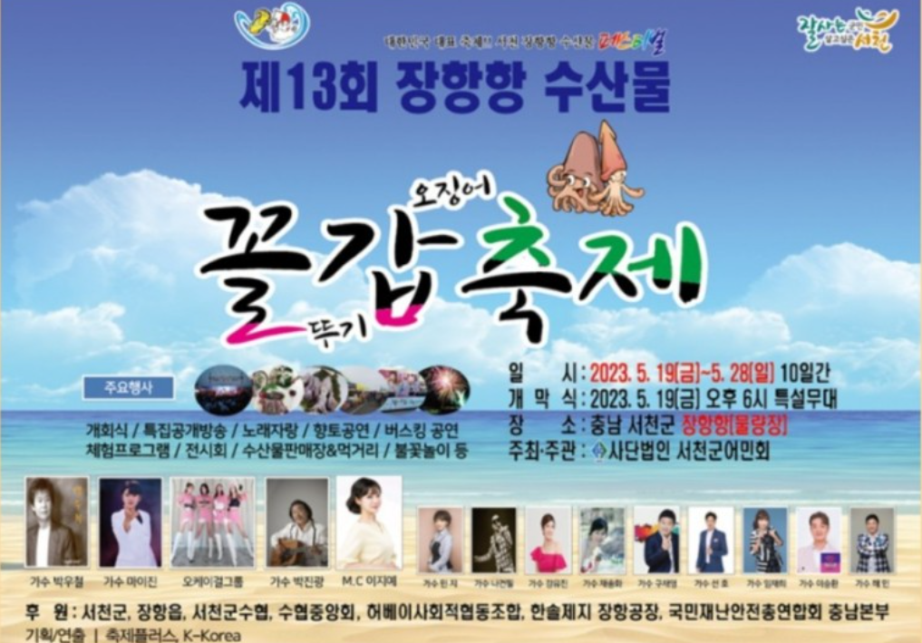 서천군 장항항에서는 매년 5월이나 6월에 신선한 해산물로 유명한 장항항 수산물 꼴갑 축제가 열립니다.