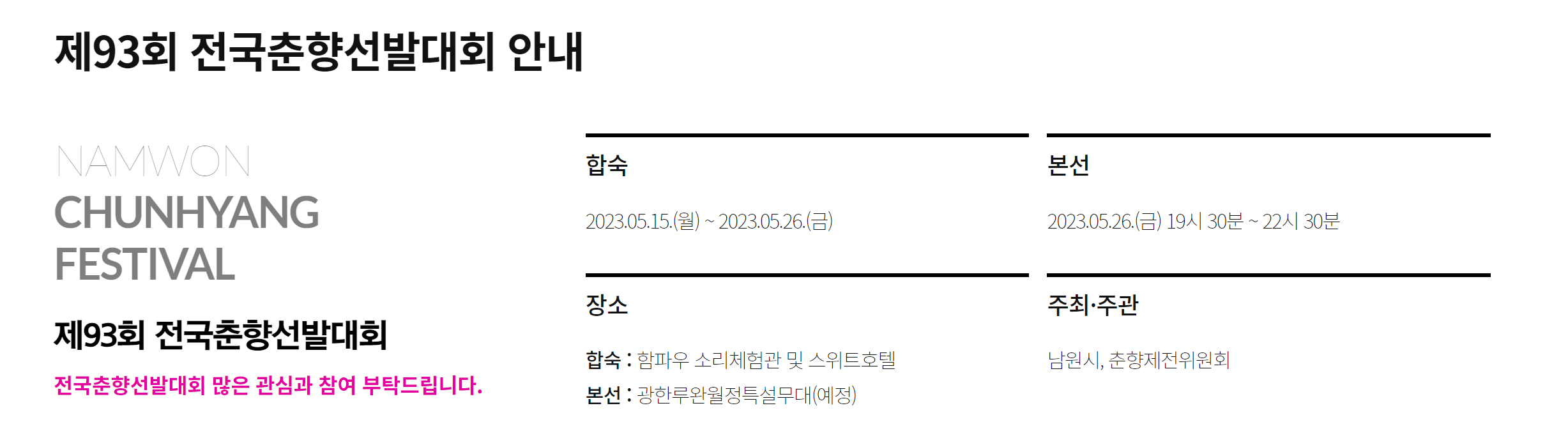 2023 남원 춘향제 기본정보 및 제93회 전국춘향선발대회