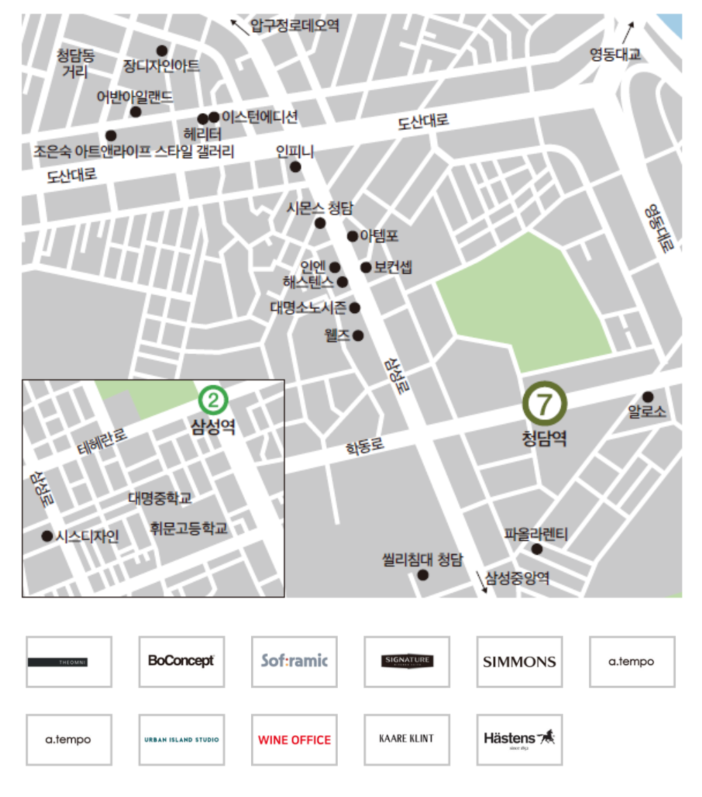 행사에는 논현가구거리에는 67개의 브랜드, 청담과 삼성 지역에는 총 11개의 브랜드가 참가합니다.