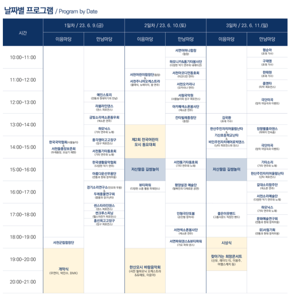 2023 한산모시문화제 축제 출연가수 저산팔읍 길쌈놀이 한산장날 열기구체험