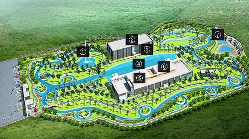 ①아일랜드 가든, ②1F 세계오지박물관, 2F 베네치아 갤러리, ③대형스크린, ④곤돌라 체험, ⑤플로리안 카페 & 간이매점, ⑥기념품 샾 & 베네치아 푸드, ⑦베니스 폭포